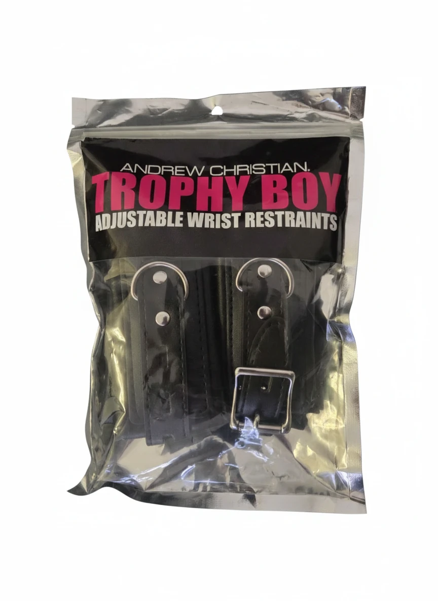 Las esposas para muñecas TROPHY BOY® de Andrew Christian están diseñadas y comercializadas para un público con gustos sexuales, y están diseñadas para sujetar las muñecas de la pareja. Eestas esposas proporcionan un ajuste seguro que permite la sujeción sin inmovilización total.