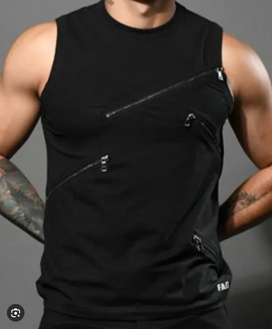 • Diseño: Camiseta sin mangas con un diseño de cremallera atrevido y detalles en contraste.