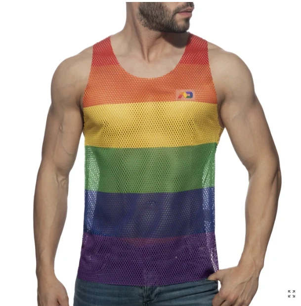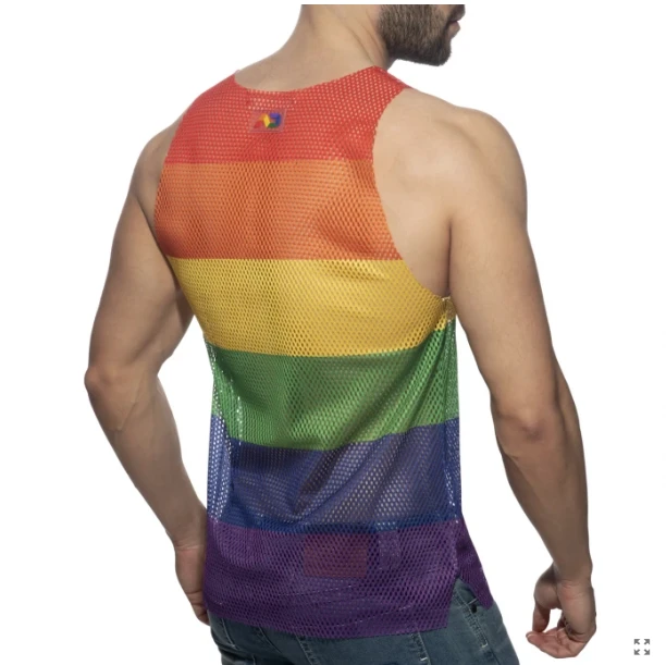 Detalles: Etiqueta de silicona de AD con el arcoíris en el pecho izquierdo y en la parte posterior.