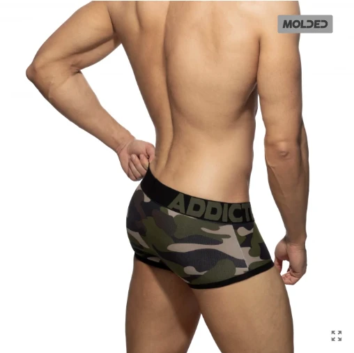Diseño de camuflaje. Tecnología de camuflaje. Estos calzoncillos están hechos con Molded Technology, un método de producción que crea el artículo sin uniones ni costuras; es como si el camuflaje ocultara cómo se fabrican realmente estos calzoncillos. La tecnología Molded crea una apariencia ultrasuave y esbelta, creando una silueta bellamente definida. Confeccionados con algodón ligero, transpirable y ecológico, estos calzoncillos dan un aire militar con un estilo vanguardista.